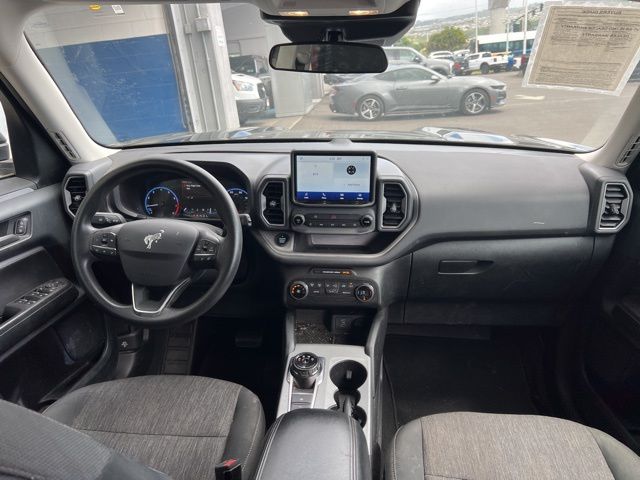 Bronco Sport Big Bend, 4D Sport Utility, 1.5L EcoBoost, 8-Speed Automatic, 4WD, Shadow Black, Ebony Cloth, 3.80 Axle Ratio, 4-Wheel Disc Brakes, 6 Speakers, ABS brakes, Air Conditioning, AM/FM Stereo, Auto High-beam Headlights, Automatic temperature control, Big Bend Package (DISC), Brake assist, Class II Trailer Tow Package w/Trailer Sway Control, Compass, Delay-off headlights, Driver door bin, Driver vanity mirror, Dual front impact airbags, Dual front side impact airbags, Electronic Stability Control, Equipment Group 200A, Exterior Parking Camera Rear, Four wheel independent suspension, Front anti-roll bar, Front Bucket Seats, Front Center Armrest, Front fog lights, Front reading lights, Fully automatic headlights, Heated door mirrors, Heated Front Bucket Seats, Illuminated entry, Knee airbag, Leather-Wrapped Steering Wheel, Low tire pressure warning, Occupant sensing airbag, Outside temperature display, Overhead airbag, Overhead console, Passenger door bin, Passenger vanity mirror, Power door mirrors, Power Moonroof, Power steering, Power windows, Rear anti-roll bar, Rear reading lights, Rear seat center armrest, Rear window defroster, Rear window wiper, Remote keyless entry, Reverse Sensing System, Roof rack: rails only, SiriusXM Radio, Speed control, Speed-sensing steering, Speed-Sensitive Wipers, Split folding rear seat, Steering wheel mounted audio controls, SYNC 3 Communications & Entertainment System, SYNC 3/Apple CarPlay/Android Auto, Tachometer, Telescoping steering wheel, Tilt steering wheel, Traction control, Trip computer, Unique Cloth Front Bucket Seats, Variably intermittent wipers, Wheels: 17" Carbonized Gray-Painted Aluminum, Wireless Charging Pad. **WHERE YOU MAKE THE DEAL **