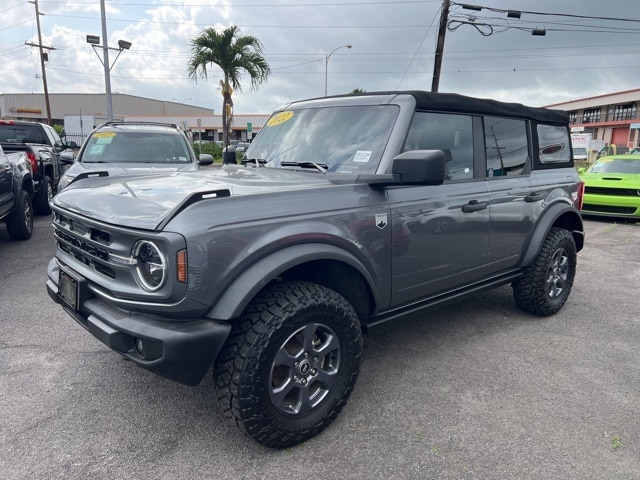 Bronco Big Bend, 4D Sport Utility, 2.3L EcoBoost I-4, 7-Speed Manual, 4WD, Carbonized Gray Metallic, Black Onyx Vinyl, 4-Wheel Disc Brakes, 6 Speakers, ABS brakes, Air Conditioning, Auto High-beam Headlights, Brake assist, Compass, Delay-off headlights, Driver door bin, Driver vanity mirror, Dual front impact airbags, Dual front side impact airbags, Electronic Stability Control, Emergency communication system: 911 Assist, Exterior Parking Camera Rear, Front anti-roll bar, Front Bucket Seats, Front Center Armrest, Front reading lights, Front wheel independent suspension, Fully automatic headlights, Heated door mirrors, Illuminated entry, Integrated roll-over protection, Low tire pressure warning, Occupant sensing airbag, Outside temperature display, Overhead airbag, Overhead console, Panic alarm, Passenger door bin, Passenger vanity mirror, Power door mirrors, Power steering, Power windows, Radio data system, Remote keyless entry, Security system, Speed control, Split folding rear seat, Steering wheel mounted audio controls, SYNC 4, Tachometer, Telescoping steering wheel, Tilt steering wheel, Traction control, Trip computer, Variably intermittent wipers, Wheels: 17" Black Gloss-Painted Steel. **WHERE YOU MAKE THE DEAL **