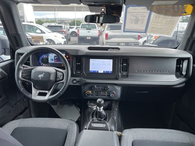 **One Owner**, Bronco Big Bend, 4D Sport Utility, 2.3L EcoBoost I-4, 7-Speed Manual, 4WD, Gray Metallic, Dark Gray W/Black Onyx Cloth, 4-Wheel Disc Brakes, 6 Speakers, ABS brakes, Air Conditioning, Auto High-beam Headlights, Brake assist, Compass, Delay-off headlights, Driver door bin, Driver vanity mirror, Dual front impact airbags, Dual front side impact airbags, Electronic Stability Control, Emergency communication system: 911 Assist, Equipment Group 221A Standard Package, Exterior Parking Camera Rear, Front anti-roll bar, Front Bucket Seats, Front Center Armrest, Front reading lights, Front wheel independent suspension, Fully automatic headlights, Heated door mirrors, Illuminated entry, Integrated roll-over protection, Low tire pressure warning, Occupant sensing airbag, Outside temperature display, Overhead airbag, Overhead console, Panic alarm, Passenger door bin, Passenger vanity mirror, Power door mirrors, Power steering, Power windows, Radio data system, Remote keyless entry, Security system, Speed control, Split folding rear seat, Steering wheel mounted audio controls, SYNC 4, Tachometer, Telescoping steering wheel, Tilt steering wheel, Traction control, Trip computer, Variably intermittent wipers, Wheels: 17" Black Gloss-Painted Steel. **WHERE YOU MAKE THE DEAL **