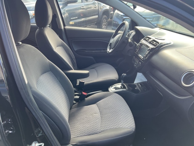 **Fuel Economy**, **Answer To $5/Gal Gas**, Mirage SE, 4D Hatchback, 1.2L 3-Cylinder DOHC MIVEC, CVT, FWD, Black, Black Cloth, 14" Alloy Wheels, 4 Speakers, ABS brakes, Air Conditioning, Android Auto & Apple CarPlay, Automatic temperature control, Brake assist, Bumpers: body-color, Chrome Meter Cluster, Chrome Package, Cloth Sport Fabric Seat Trim, Driver door bin, Driver vanity mirror, Dual front impact airbags, Dual front side impact airbags, Electronic Stability Control, Exterior Parking Camera Rear, Front Bucket Seats, Front reading lights, Front wheel independent suspension, Illuminated entry, Knee airbag, Leather Shift Knob, Low tire pressure warning, Occupant sensing airbag, Overhead airbag, Passenger door bin, Power door mirrors, Power steering, Power windows, Radio: Smartphone Link Display Audio System, Rear window defroster, Rear window wiper, Remote keyless entry, Split folding rear seat, Spoiler, Steering wheel mounted audio controls, Tachometer, Tailgate Garnish, Tilt steering wheel, Traction control, Trip computer, Variably intermittent wipers. **WHERE YOU MAKE THE DEAL **