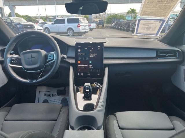 2 Long Range Dual Motor, 4D Hatchback, Electric Motor, 1-Speed Automatic, AWD, Blue, Charcoal Cloth, 4-Wheel Disc Brakes, 8 Speakers, ABS brakes, Air Conditioning, Auto High-beam Headlights, Auto-dimming Rear-View mirror, Automatic temperature control, Brake assist, Bumpers: body-color, Compass, Delay-off headlights, Driver door bin, Driver vanity mirror, Dual front impact airbags, Dual front side impact airbags, Electronic Stability Control, Embossed Textile Seating Surfaces, Emergency communication system: Polestar Connect, Exterior Parking Camera Rear, Four wheel independent suspension, Front anti-roll bar, Front Bucket Seats, Front Center Armrest, Front dual zone A/C, Front reading lights, Fully automatic headlights, Garage door transmitter: Homelink, Heated door mirrors, Heated Front Seats, Heated front seats, Illuminated entry, Knee airbag, Lane Departure Warning System, Low tire pressure warning, Navigation System, Occupant sensing airbag, Outside temperature display, Overhead airbag, Overhead console, Panic alarm, Passenger door bin, Passenger vanity mirror, Power door mirrors, Power driver seat, Power Liftgate, Power passenger seat, Power steering, Power windows, Radio: High Performance Audio, Rain sensing wipers, Rear fog lights, Rear reading lights, Rear seat center armrest, Rear window defroster, Remote keyless entry, Security system, Speed control, Speed-sensing steering, Split folding rear seat, Steering wheel mounted audio controls, Telescoping steering wheel, Tilt steering wheel, Traction control, Trip computer, Turn signal indicator mirrors, Variably intermittent wipers, Wheels: 19" 5 V-Spoke Black Diamond Cut Alloy. **WHERE YOU MAKE THE DEAL **